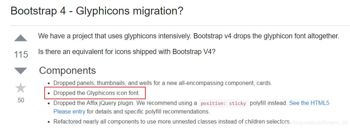 Glyphicons are not supported in bootstrap 4. Official open source svg icon library for bootstrap.. Our icon font woff is 12.4kb (nearly 4 times smaller than font awesome).